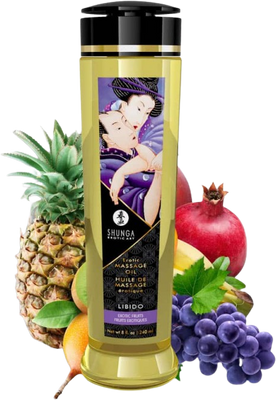 Shunga Masážny olej Erotic Massage Oil Exotic Fruits 240 mlVšetko o produkteDoplňujúce informácieHodnotenie produktuUžite si potešenie z dávania a prijímania zmyselnej, erotickej masáže pomocou exkluzívneho masážneho oleja SHUNGA. Olej sa ľahko a hladko rozotiera po pokožke a nezanecháva žiadne mastné škvrny.
