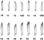 - Na jedno držadlo možno použiť viac druhov žiletiek. Skalpelové čepieľky sú označené číslami - čo číslo, to iný tvar