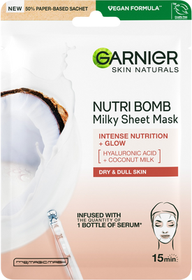 Garnier Vyživujúca textilná maska s kokosovým mliekom Nutri Bomb Skin Naturals 28 gVšetko o produkteDoplňujúce informácieHodnotenie produktuJe tvoja pleť suchá a zaslúžila by si intenzívnu dávku výživy? Dopraj si prvú textilnú masku od Garnier s mliečnym sérom, ktorá tvoju pleť vyživí už za 15 minút!