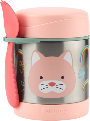Skip Hop Zoo Termoska na jedlo s lyžičkou/vidličkou Mačka, 3r+ 325 mlVšetko o produkteDoplňujúce informácieHodnotenie produktuDržiak možno použiť aj na uloženie iných detských príborov (podobnej veľkosti). Termoska udrží pripravované jedlo: teplé až 7 hodín/ a studené až 5 hodín v závislosti od teploty pripravovaného jedla a vonkajšej teploty. Na dosiahnutie lepších výsledkov pred vložením do termosky jedlo predhrejte/ochlaďte v horúcej/studenej vode po dobu 5 minút.