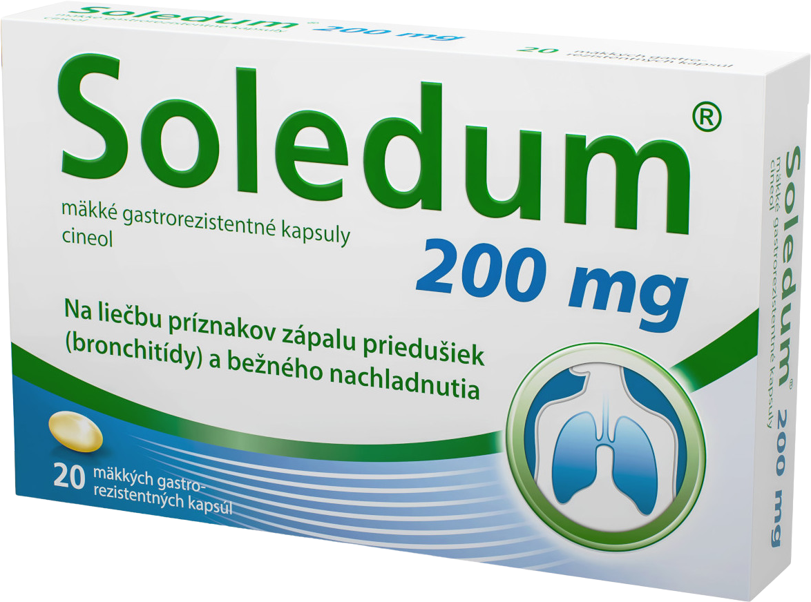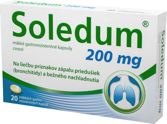 Soledum 200mg mäkké gastrorezistentné 20 kapsúlVšetko o produkteDoplňujúce informácieHodnotenie produktuLiek na prídavnú liečbu chronických a zápalových ochorení dýchacích ciest, ako je sínusitída (zápal prínosových dutín), chronická bronchitída (chronický zápal priedušiek), CHOCHP (chronická obštrukčná choroba pľúc) a bronchiálna astma (chronické zápalové ochorenie dolných dýchacích ciest).