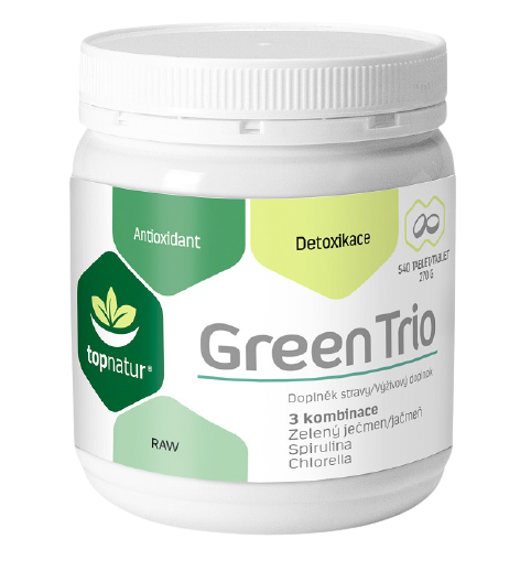 Prípravok, ktorý v jedinej tablete obsahuje tri "zelené " potraviny. Chlorella, Zelený jačmeň a Spirulina tvoria ideálnu kombináciu, preto každá z uvedených složiek obohacuje výrobok o špecifické vlastnosti, čím dodáva produktu vynikajúce schopnosti.