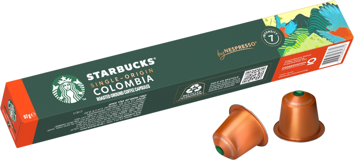 Kávové kapsule kompatibilné s kávovarmi NESPRESSO®. Užite si STARBUCKS® kávu, ktorú milujete bez toho, aby ste museli opustiť dom. Táto 100% kolumbijská káva má zaoblené telo, šťavnatú chuť s výraznou orieškovou bodkou. Záväzok 100% etického pôvodu kávy v spolupráci s Conservation International
