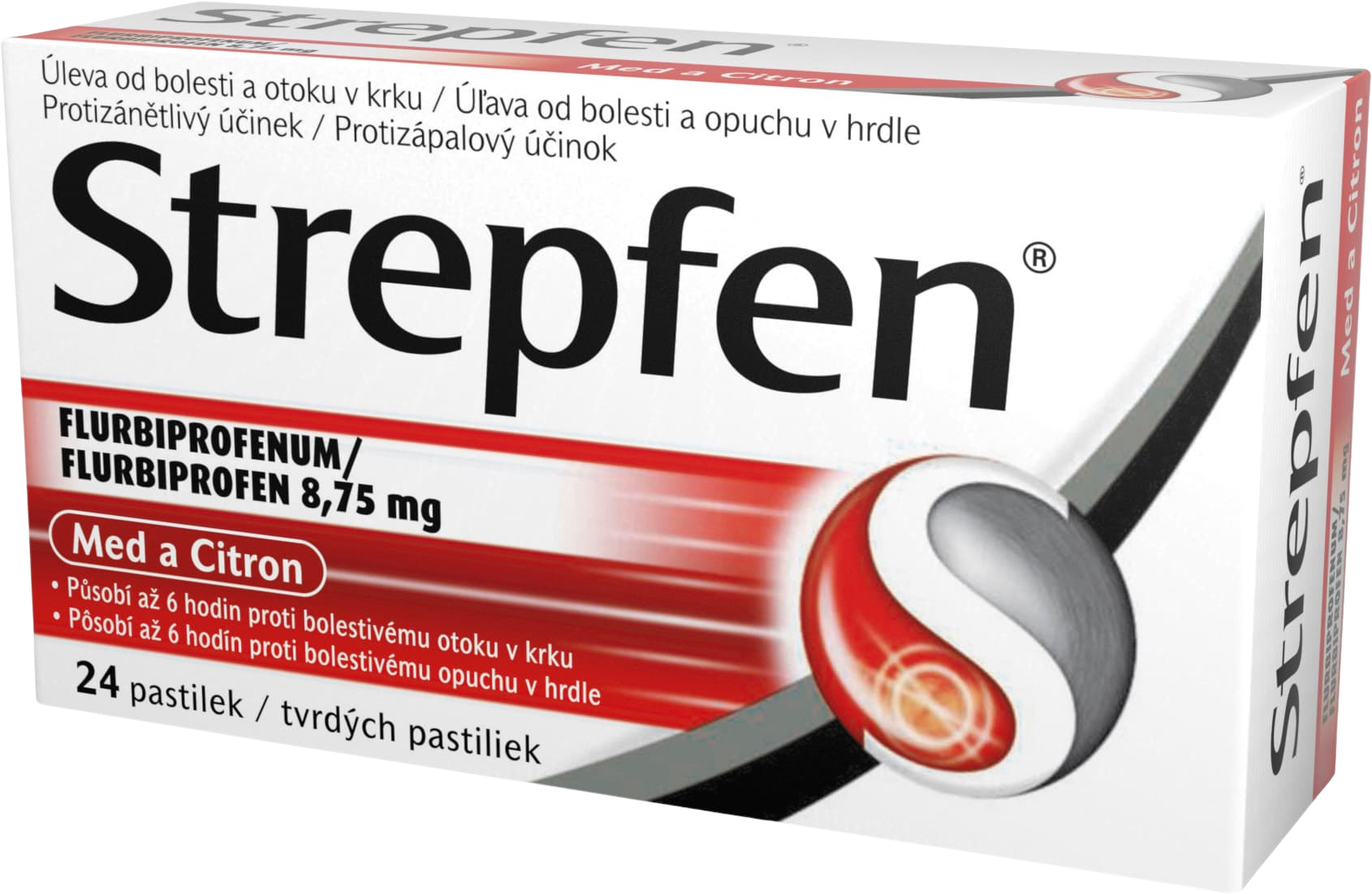 Vyskúšajte tiež ostatné výrobky značky Strepfen, ktoré nájdete v kategóriách Bolesť hrdla a Zdravie a lieky. Výrobok ohodnotilo 22 zákazníkov a 100 % z nich by ho odporúčalo aj ostatným. Strepfen Med a citrón pastilky 24 pastiliek je registrovaný v databáze ŠUKL pod kódom 33569. Ak si nie ste istí výberom tohto produktu, inšpirujte sa v kategórii Bolesť hrdla.