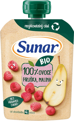 Sunar BIO ovocná kapsička hruška, malina 4m+ 100 gVšetko o produkteDoplňujúce informácieHodnotenie produktu