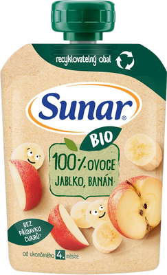 Sunar BIO ovocná kapsička jablko, banán 4m+ 100 gVšetko o produkteDoplňujúce informácieHodnotenie produktu