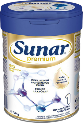 Sunar Premium 1 je počiatočná dojčenská mliečna výživa, v prášku. Je určený iba pre výživu dojčiat od narodenia v období odstavovania alebo pokiaľ nemôžu byť dojčené. Dojčenie je pre novorodencov a dojčatá najlepší spôsob výživy. Skôr, než sa rozhodnete používať náhradnú mliečnu výživu, poraďte sa s detským lekárom. Sunar Premium 1 ako náhradu za dojčenie používajte iba na radu nezávislých osôb kvalifikovaných v lekárstve, výžive alebo farmácii, alebo iných odborníkov zodpovedných za starostlivosť o matku a dieťa. Pre zdravie dojčiat je dôležité správne dodržiavanie návodu na prípravu. Pri príprave používajte iba priloženú odmerku. Nemeňte pomer prášku a vody.