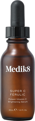 Medik8 Super C Ferulic, Antioxidačné sérum 30 mlVšetko o produkteDoplňujúce informácieHodnotenie produktuNajsilnejšie sérum s vitamínom C z portfólia Medik8, to je Super C Ferulic. Obsahuje vysoko stabilnú 30% kyselinu ethylaskorbovú (vitamín C), ktorej účinok ešte zosilňuje obsiahnutá kyselina ferulová. Sérum pleť omladzuje a prepožičiava jej oslnivý vzhľad.