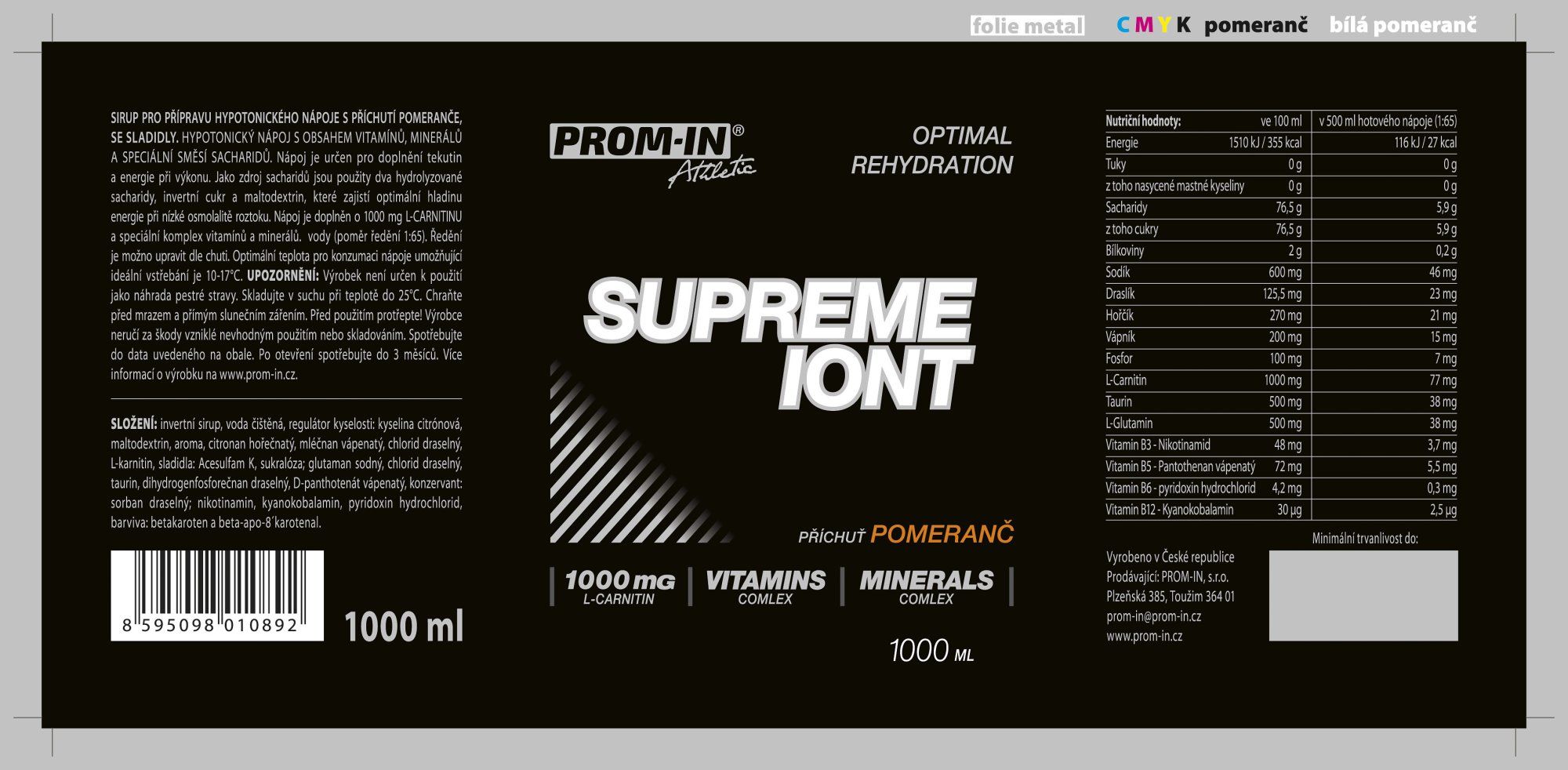 Prom-In SUPREME IONT DRINK pomaranč 1000 mlVšetko o produkteDoplňujúce informácieHodnotenie produktuNápoj je doplnený o 1000 mg L-karnitínu a špeciálny komplex vitamínov a minerálov.