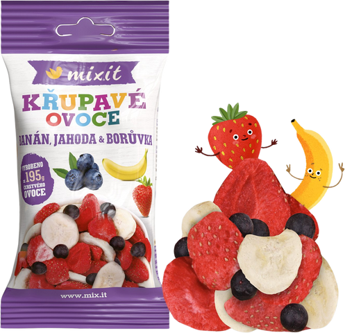 Užívatelia si obľúbili značky Mixit. Najlepšie hodnoteným výrobkom je Mixit Chrumkavé ovocie do vrecka - Chrumkavý banán, jahoda, čučoriedka 5 ks.