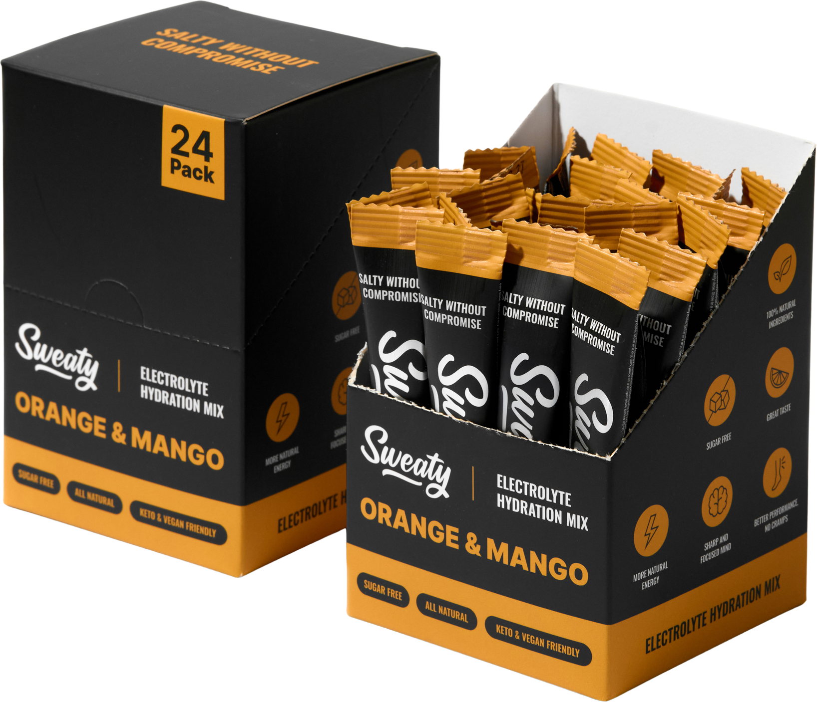 Sweaty Electrolyte Hydration Mix Mango & Orange 24 x 6 gVšetko o produkteDoplňujúce informácieHodnotenie produktuSweaty Electrolyte Hydration Mix Mango & Orange je pokročilý elektrolytový nápoj vytvorený na účinnú hydratáciu, prevenciu kŕčov a udržanie výkonnosti počas tréningu a v horúčavách. Obsahuje štyri kľúčové minerály – sodík, draslík, horčík a vápnik – vo vyváženom pomere pre optimálnu absorpciu.