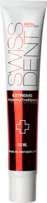 Swissdent EXTREME Intenzívna bieliaca pasta 50 mlVšetko o produkteDoplňujúce informácieHodnotenie produktuSwissdent bieliaca pasta dstraňuje výraznejšie sfarbenie zubov, ktoré je spôsobené napríklad fajčením, konzumáciou červeného vína, kávy alebo čaju. Pasta od značky Swissdent je veľmi šetrná, pretože jej hodnota abrazivity je iba 40 RDA. Obsahuje dvojitú dávku enzýmov, papaín a bromelaín, ktoré šetrne odstránia zafarbenie z povrchu zubov. Ďalej koenzým Q10 a vitamín E revitalizujú ďasná.