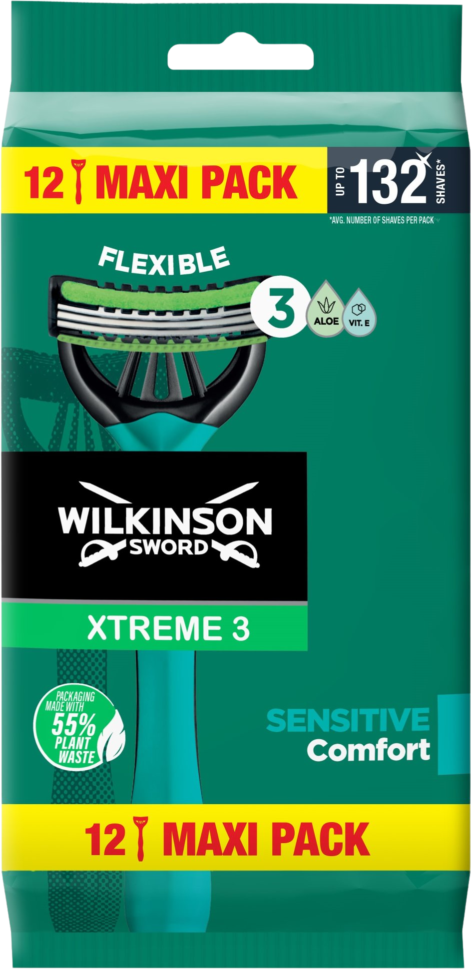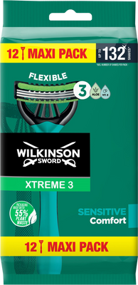 Wilkinson Sword Sword Xtreme3 Sensitive Comfort Maxi Pack 12 ksVšetko o produkteDoplňujúce informácieHodnotenie produktuJednorazový holiaci strojček Wilkinson Xtreme3 Sensitive Pure poskytuje dôkladné a presné oholenie vo všetkých požadovaných uhloch. Zvlhčujúci pásik s aloe vera a vitamínom E chráni pokožku pred podráždením a je ideálny pre citlivú pokožku. Tri čepele sú flexibilné, takže sa dokážu prispôsobiť tvaru tváre. Holiace strojčeky Wilkinson sa ľahko oplachujú, aby sa zabránilo upchatiu čepelí. Súčasťou každého je praktický cestovný kryt na ochranu a pogumovaná rukoväť, ktorá je protišmyková a ľahko sa drží v ruke.