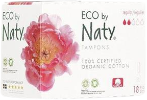 Dámske ECO tampóny Naty Regular sú vyrobené zo 100% z prírodných materiálov, biologicky rozložiteľné, kompostovateľné. Vhodné pre slabšiu a bežnú menštruáciu. Tampóny Naty sú vyrobené z organickej bavlny a svojou funkčnosťou a spoľahlivosťou sa nelíšia od konvenčných tampónov. Viac informácií