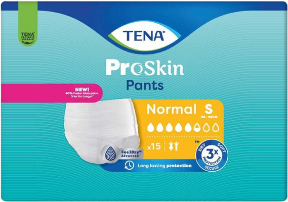 Tena Pants Normal S inkontinenčné nohavičky 15 ksVšetko o produkteDoplňujúce informácieHodnotenie produktuNapínacie absorpčné nohavičky Tena Pants sú ideálnym riešením pre ľudí so stredne ťažkou až ťažkou inkontinenciou, najmä pre tých, ktorí sú mobilní alebo čiastočne mobilní. Tieto nohavičky rýchlo absorbujú moč a poskytujú spoľahlivú ochranu pred únikom, zatiaľ čo ich dermatologicky testovaný materiál pomáha udržiavať pokožku suchú a minimalizuje riziko podráždenia. Tena Pants sú mäkké a pohodlné absorpčné nohavičky, ktoré poskytujú ochranu pred únikom moču vo dne aj v noci.