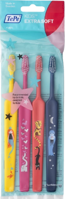 TePe Select Compact ZOO X-soft Zubná kefka kids vo vrecúšku 4 ksVšetko o produkteDoplňujúce informácieHodnotenie produktuTePe Kids™ majú mäkké vlákna a sú určené pre deti od 3 rokov. Menšia trojuholníková hlavica zaisťuje ľahký prístup a extra mäkké vlákna šetrné čistenie. Sú dostupné aj vo variante Extra Soft.