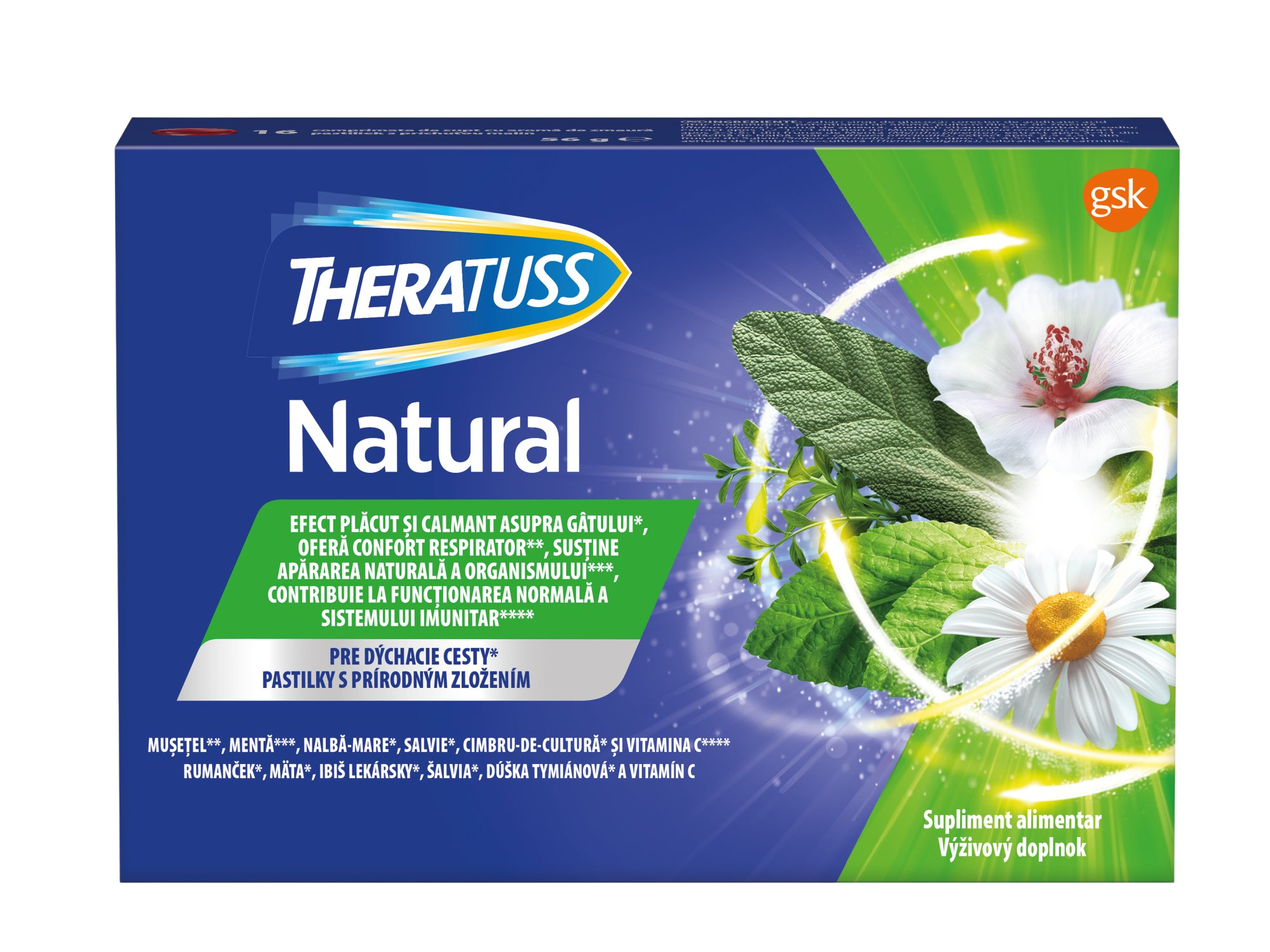 Ak vás trápi kašeľ, je tu pre vás nový sirup Theratuss ProNatural, ktorý bojuje 100 % silou prírody s medom, extraktami z ibiša lekárskeho, skorocelu a repíka lekárského. Upokojuje suchý a vlhký kašeľ a chráni sliznicu dýchacích ciest. Ak máte problém s podraždeným hrdlom a suchom v krku vyskúšajte pastilky Theratuss s upokojujúcim a chladivým účinkom.*