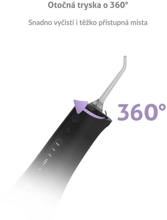 Hlavička trysky sa otáča o 360 stupňov, takže ľahko vyčistí všetky kúty ústnej dutiny.
