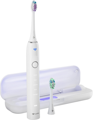 Chytrá technológia pre najlepšiu starostlivosť o zuby sa stretáva so sonickou kefkou TrueLife SonicBrush Clean70 UV. Odstraňuje až 12&násobne; viac zubného povlaku ako manuálna zubná kefka s až 90 000 ťahmi za minútu, táto sonická zubná kefka je skutočným skvostom medzi zubnými kefkami. Sonická technológia SonicTrue® čistí povrch zubov jemnými vibráciami a vytvára mikrobublinky, ktoré vďaka víreniu vody a pasty čistia medzizubné priestory. Tlakový senzor s technológiou SmartPressure® monitoruje, aby ste si nespôsobili zdravotné problémy prílišným tlakom na zuby a ďasná. Veľkú službu vám urobí aj UV sterilizácia ukrytá v dobíjacom puzdre, ktorá účinne zničí až 99,9 % baktérií a vírusov z hlavice kefky. Svoje zuby môžete rozmaznávať doma alebo na cestách, a to až 70 dní na jedno nabitie, vďaka 5 režimom čistenia (Whitening, Clean, Sensitive, Shine, Massage) a 2 priloženým hlaviciam (Standard a Sensitive). Naposledy použitý režim zostáva uložený v pamäti a automaticky sa spustí po opätovnom zapnutí. Pracuje ideálne 2 minúty, na ktoré je nastavený časovač.