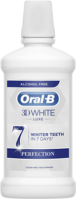 S ústnou vodou Oral-B 3D White Luxe Perfection budú zuby belšie už za 7 dní, pokiaľ sa používa po čistení zubov. Pomáha odstraňovať zo zubov povrchové škvrny a zanecháva ústa svieže bez nepríjemného štiepania alkoholu. Viac informácií