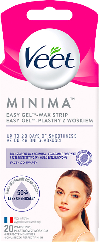 Veet Minima Hypoalergénne voskové pásky na tvár 20 ksVšetko o produkteDoplňujúce informácieHodnotenie produktuPásiky na depiláciu tváre. Hypoalergénne. Vytrháva chĺpky aj s korienkom, vaša pokožka zostane hladká až štyri týždne. Obsahuje 20 ks.