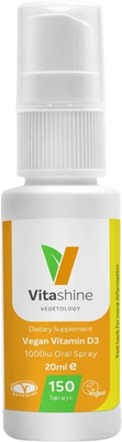 Vegetology VitaShine Vitamin D3 Spray je univerzálny doplnok stravy vhodný pre všetky vekové kategórie vrátane novorodencov, dospelých, tehotných a dojčiacich žien a seniorov. Vďaka svojmu 100 % prírodnému a vegánskemu zloženiu, certifikovanému Vegánskou spoločnosťou, a jednoduchej aplikácii vo forme spreja poskytuje tento výrobok účinnú doplnkovú výživu vitamínom D3.