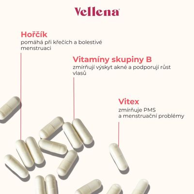 Kapsule Vellena kombinujú prírodné výťažky a aminokyseliny, ktoré dopĺňajú bežnú stravu a môžu byť súčasťou každodennej rutiny zameranej na pohodlie a osobnú pohodu žien.