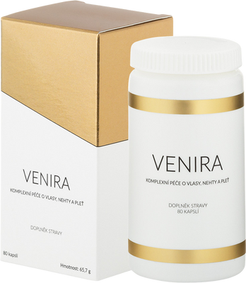 Tento preparát sa vďaka starostlivo prepracovanej receptúre vyznačuje vysokou komplexnosťou v pôsobení na spojivové tkanivá, čo sa priamo prejavuje na stave a vzhľade pokožky, vlasov a nechtov. Zatiaľ čo jeden z najznámejších konkurenčných výrobkov obsahuje 16, iný 10 alebo len 6 účinných zložiek, VENIRA je zložená z 18 zložiek, z ktorých každá hrá nezastupiteľnú úlohu v pôsobení na spojivové tkanivá, pokožku, vlasy a nechty. Ich funkcia je predovšetkým výživná. Každá zo zložiek dodáva organizmu živiny potrebné pre zdravú pokožku a na perfektnú kvalitu vlasov a nechtov.
