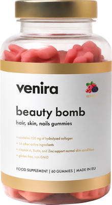 Venira Beauty bomb hair nail skin gummies lesné plody 60 ksVšetko o produkteDoplňujúce informácieHodnotenie produktuFunkcie: