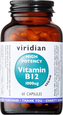 Viridian High Potency Vitamín B12 1000 ug, 60 kapsúlVšetko o produkteDoplňujúce informácieHodnotenie produktuVitamín B12 je vo vode rozpustný vitamín, ktorý sa najčastejšie nachádza v živočíšnych produktoch. Dostatočný príjem je preto pre vegánov veľmi dôležitý. Tento výrobok obsahuje vitamín B12 z rastlinného zdroja.