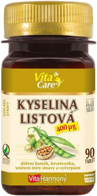 VitaHarmony Kyselina listová 400μg 90 tablietVšetko o produkteDoplňujúce informácieHodnotenie produktuVýživový doplnok s kyselinou listovou, ktorá napomáha k rastu zárodočných tkanív počas tehotenstva, vhodný pre ženy.