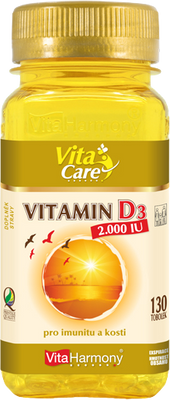 VitaHarmony Vitamin D3 2.000 m.j. (50 µg) 130 tvrdých kapsúlVšetko o produkteDoplňujúce informácieHodnotenie produktuKľúčovým účinkom vitamínu D je aj podpora vstrebávania vápnika a fosforu v tele, čím prispieva k normálnej hladine vápnika v krvi. Je preto dôležitý pre stavbu kostí, zubov a pre podporu funkcie svalov. Užívanie tohto prípravku je vhodné pri zvýšených nárokoch na funkciu imunitného systému a pri dlhodobom obmedzení pobytu na priamom slnku, ktorého lúče sú nevyhnutné pre prirodzenú tvorbu vitamínu D3 v koži.