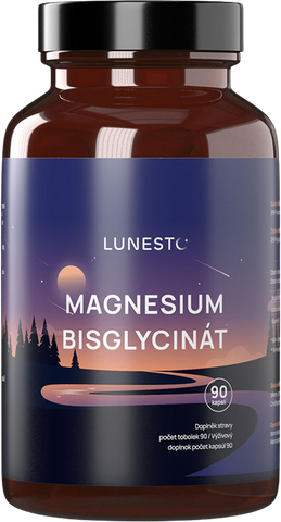 Lunesto Magnesium Bisglycinát, 650 mg, Horčík 130 mg & Vitamín B6, 90 kapsúl