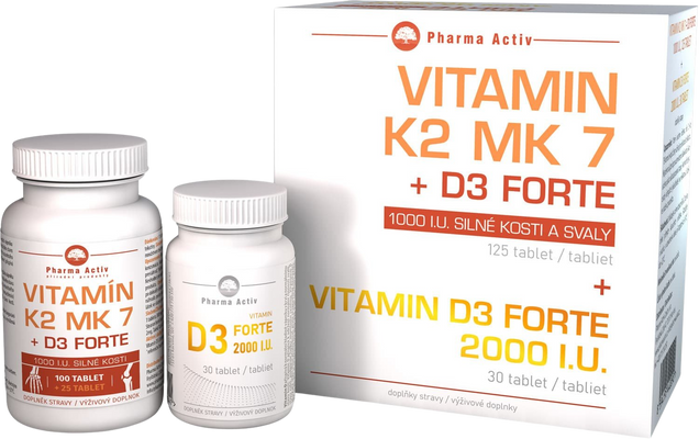 Pharma Activ Vitamin K2 MK7 + D3 Forte 125 tabliet + Vitamin D3 Forte 2000 I.U.Všetko o produkteDoplňujúce informácieHodnotenie produktuVitamín K2 MK7 + D3 FORTE