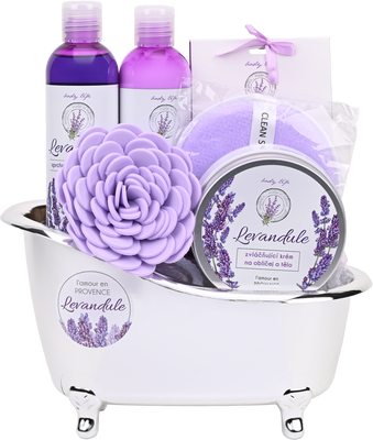 Darčekové balenia kozmetiky s levanduľovým olejom patria medzi najobľúbenejšie. Levanduľový olej má široké využitie. Je známy najmä pre svoje upokojujúce a regeneračné účinky. Úžasne uvoľňuje nielen pokožku, ale aj svalové napätie tela a mysle, zlepšuje prekrvenie pokožky, pôsobí proti depresii a zlej nálade. Používa sa aj na liečbu popálenín, plesní a ekzémov. Je ideálny na regeneráciu citlivej a namáhanej pokožky, znižuje riziko popraskania. Kozmetika s levanduľovým olejom dodáva pokožke pocit jemnosti a pružnosti a nádherne ju prevonia.