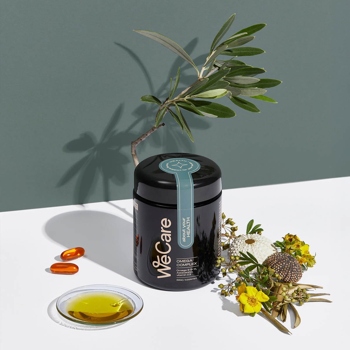 WeCare About your Health - Omega komplex 60 kapsúlVšetko o produkteDoplňujúce informácieHodnotenie produktuDoplnok stravy Staráme sa o vaše ZDRAVIE - Omega komplex obsahuje zmes lososového, pupalkového a olivového oleja v jedinečnej rovnováhe omega-3-6-7-9 mastných kyselín. Vysoko spracovaný lososový olej je bohatým zdrojom omega-3 mastných kyselín, konkrétne kyseliny eikosapentaenovej (EPA) a kyseliny dokosahexaenovej (DHA), a neesenciálnych omega-7 a omega-9 mastných kyselín. Tento výživový doplnok obsahuje aj astaxantín, prírodný karotenoid známy svojou prítomnosťou v pigmente lososa.