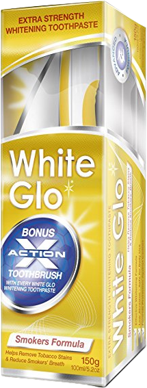 White Glo Zubná pasta pre fajčiarov + Kefka a medzizubné kefky 150 gVšetko o produkteDoplňujúce informácieHodnotenie produktuVyvinutá priamo pre fajčiarov. Zaručuje účinné bielenie a čistenie zubov. Je určená priamo na odstránenie žltého sfarbenia vznikajúceho pri fajčení. Balenie obsahuje špeciálnu zubnú kefku a medzizubné kefky. Pre nízku abrazivitu sa odporúča denné použitie. Vhodné používať s bieliacim púdrom White Glo.