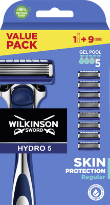 Wilkinson Sword Holiaci strojček Hydro 5 protection XXL + náhradné hlavice 9 ksVšetko o produkteDoplňujúce informácieHodnotenie produktuBritvy s technológiou Skin Guard vyhladia povrch pokožky a pomáhajú eliminovať jej podráždenie. Pánsky holiaci strojček Wilkinson Sword Hydro 5 ochráni pleť vďaka unikátnej gélovej hydratácii.