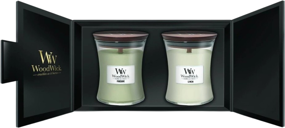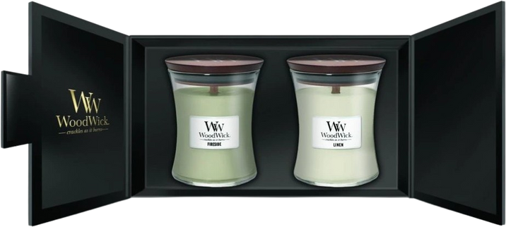 WoodWick Darčekový set stredná sviečka 2 ksVšetko o produkteDoplňujúce informácieHodnotenie produktuLuxusná darčeková súprava WoodWick je dokonalou kombináciou dvoch neodolateľných vôní - Linen a Fireside.