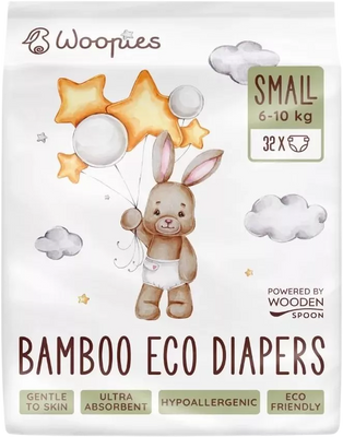 Woopies Detské EKO plienky SMALL (6-10kg) Wooden Spoon 32 ksVšetko o produkteDoplňujúce informácieHodnotenie produktuPlienky Woopies, mäkké ako bambusové spodné prádlo, zabalia dieťa s jedinečnou starostlivosťou z prírodných tkanín, ktoré pomáhajú detskej pokožke voľne dýchať.