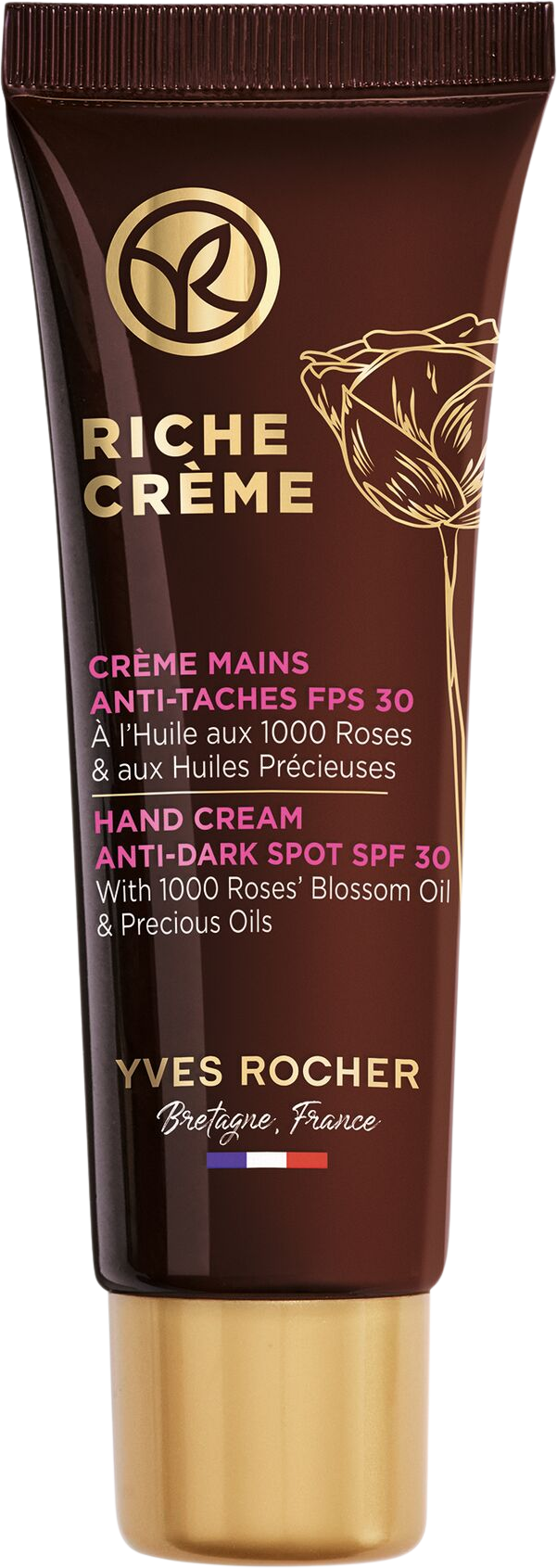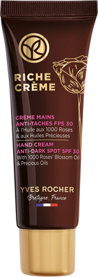 Yves Rocher Krém na ruky proti pigmentovým škvrnám s SPF 30 50 mlVšetko o produkteDoplňujúce informácieHodnotenie produktuDeň po dni sa pokožka stáva pružnejšou a je chránená pred škodlivými účinkami UV žiarenia. Po mesiaci používania je pokožka vyživená, zregenerovaná a pigmentové škvrny sú redukované. Výživná textúra okamžite obnovuje komfort rúk a rýchlo sa vstrebáva, zanecháva pokožku jemnú a bez pocitu mastnoty.