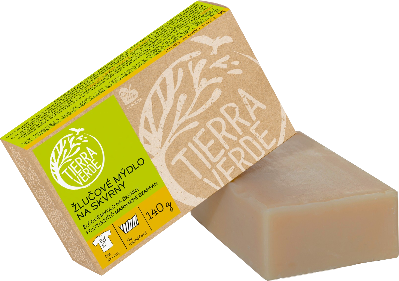 Tierra Verde Žlčové mydlo na pranie, odstraňovač škvŕn 140 gVšetko o produkteDoplňujúce informácieHodnotenie produktuPrací mydlo s prídavkom hovädzej žlče, ktorá obsahuje rôzne druhy enzýmov rozkladajúcich tuky a bielkoviny. Veľmi účinné v odstraňovaní škvŕn a nečistôt (mastnota, krv, atrament, šmír, tráva, červené víno, ovocné a zeleninové šťavy, hlina, pot na golieroch a manžetách košieľ a pod.). Skvelé na odstránenie škvŕn z prateľných látkových plienok a látkových menštruačných vložiek.