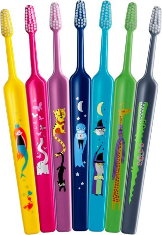 Starostlivosť o detské zuby je potreba riešiť včas a venovať im patričnú pozornosť. Zubné kefky je vhodné vyberať hlavne podľa veku dieťaťa. Už od prerezania prvých zúbkov sa odporúča používať špeciálnu silikónovú kefku na prst. Približne od prvého roku dieťaťa by sa malo začínať čistiť s manuálnou zubnou kefkou. Deti sa tak naučia pravidelnú ústnu hygienu a odvďačia sa vám žiarivo bielym úsmevom. Zubné kefky ich očaria nielen svojim farebným vzhľadom, ale premenia aj čistenie zubov na zábavu. Od 3 rokov dieťaťa je potom možné si čistenie uľahčiť pomocou elektrickej kefky pre deti.